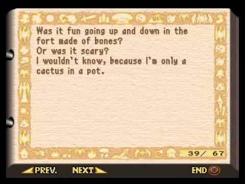 Aqui tem um video com todas as missões em que o Li'l Cactus dá sua opnião. É engraçado ler o que ele escreveu e é emocionante depois de terminar o jogo.